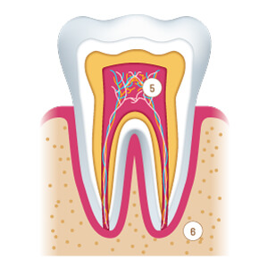 Racchiusa nella dentina, la polpa è costituita da tessuto connettivo, arterie, vene e nervi. Nutre e da sensibilità al dente.